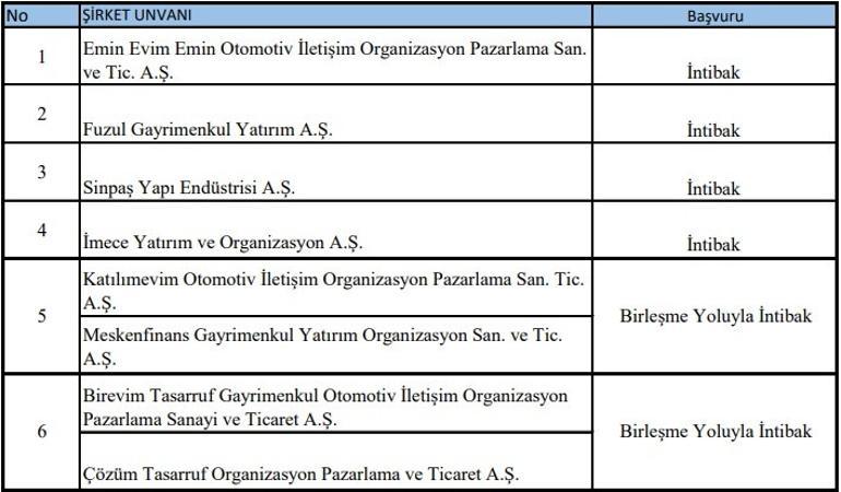 Bu çerçevede, Bankacılık Düzenleme ve Denetleme Konseyi (Kurul) tarafından yapılan değerlendirmede, ekli listede yer alan şirketlerin intibak koşullarını sağlayamamaları sebebiyle “intibak taleplerinin reddine ve tasfiyelerine” karar verilmiş olup, kelam konusu 01.07.2021 tarihli 9647 sayılı Konsey Kararı ve 02.07.2021 tarihli ve 31529 Yinelenmiş sayılı Resmî Gazetede yayımlanmıştır.