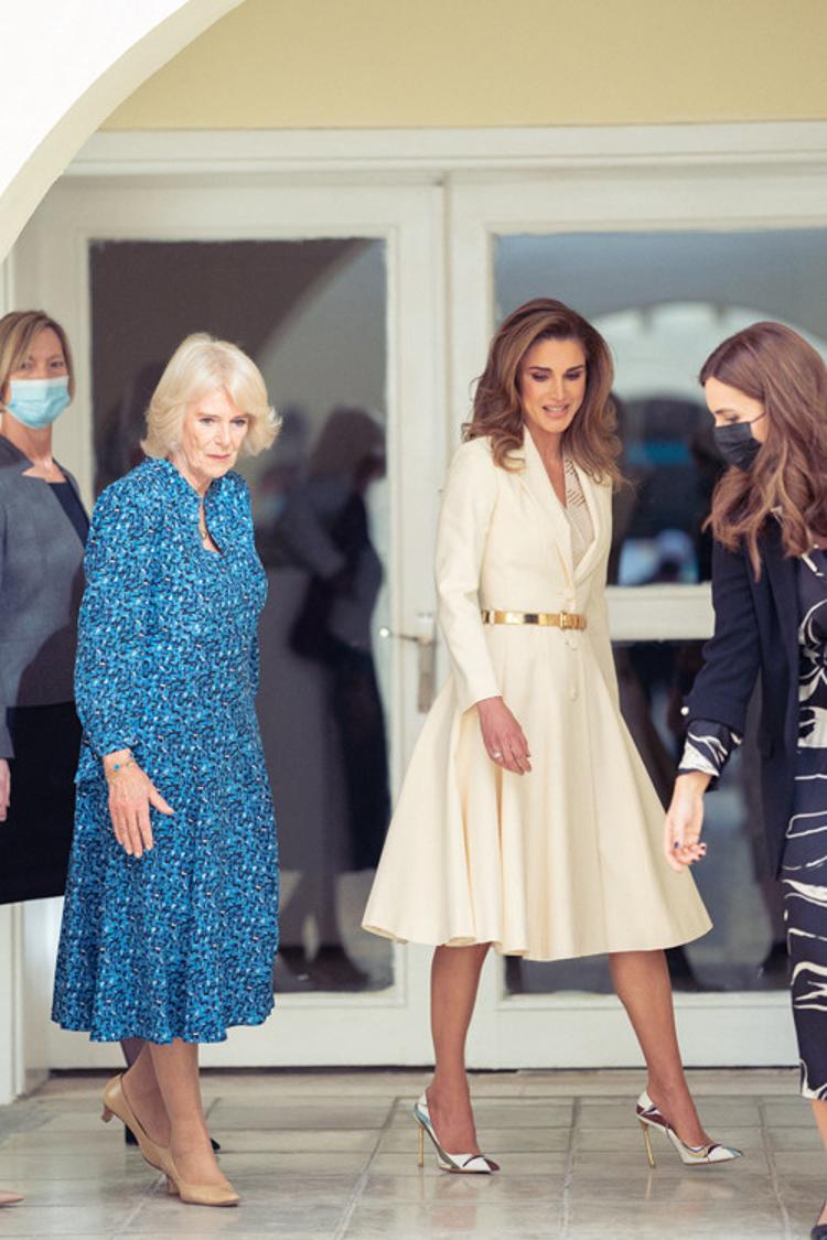 Merasimde Prens Charles ile Kral Abdullah’ın yanı sıra eşlerinin giysileri de dikkat çekti. 51 yaşındaki Kraliçe Rania, altın kemer, ona uygun çanta ve beyaz bir grupla çarpıcı bir manzara sergilerken, 74 yaşındaki Camilla ise mavi Fiona Clare marka bir elbise giydi.