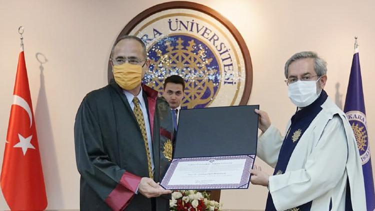 “Bu merasimi daha evvel gerçekleştirecektik. 18 Kasım 2019 tarihinde alınmıştı. Lakin COVID -19’un zorlukları nedeniyle bugün yerine getirebiliyoruz. Yıllarca yaptığı çalışmalarıyla Prof. Dr. Gökhan Hotamışlıgil, hem okulumuzun ismini hem de ülkemizin ismini yükseklere taşıdı. Bilim dünyasındaki gururumuz olmaya devam ediyor. Gökhan hocamız her konuşmasında Türkiye’de doğmuş olmaktan ve aldığı eğitimden mutlu olduğunu tabir ediyor. Fakat Amerika’da da Türk topluluğu içinde saygın bir pozisyonu olduğunu biliyoruz.. Pek çok kıymetli mükafatın de sahibi. Bir endokrinolog olarak da yaptığı çalışmaları yakınnan takip ediyorum. Bilhassa besinlerin tahribat yaratan tesirlerini ortadan kaldıran gen keşifleri nedeniyle bugün kendisine fahri doktora unvanı da vermekten büyük memnunluk duyuyorum.”