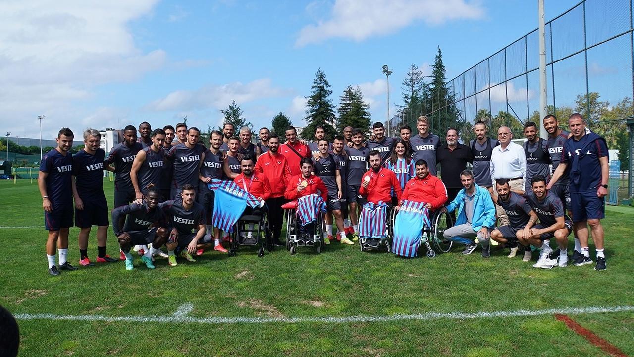 Ziyarette Trabzonsporlu futbolcular, paralimpik atletlere forma armağan etti.