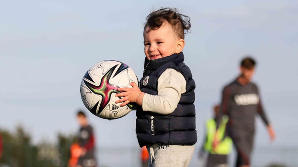 Trabzonspor’un Beşiktaş maçı sonrası birinci egzersizine kaleci Uğurcan Çakır, 1 buçuk yaşındaki oğlu Kuzeyi de getirdi. Futbolcuların kucağından inmeyen minik konuk antrenmana renk kattı.