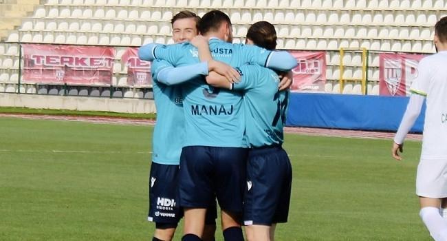 90+1. dakikada ceza alanı içinde topla buluşan Manaj düzgün bir plaseyle topu kalecinin uzanmayacağı köşeye gönderdi. 5-0